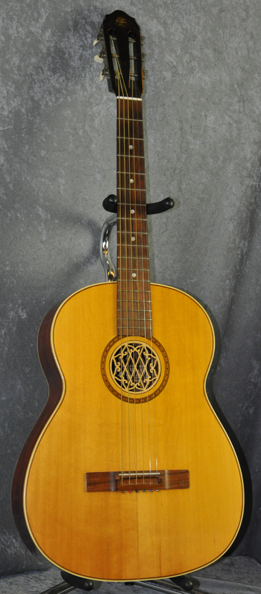 All solid Woods off course:Spruce top, fine mahogany back and sides.Rosewood fingerboard and bridge.Pearl dot inlays.Slotted headstock.46mm nut..#34329.Great sound!!.